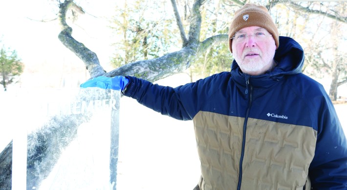 Left: Brian Mogren and a crew of volunteers braved single-digit wind chills to install ice memorials honoring Renee Good and Alex Pretti. His dedication, from the 40-hour vigil on the North Side to the glowing sculptures at the Luminary Loppet, reflects his belief in community, healing and showing up for neighbors when it matters most. (Images: Brian Lucas)