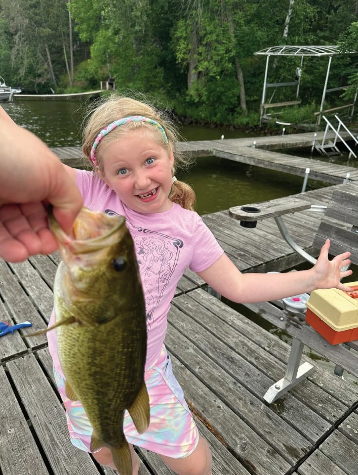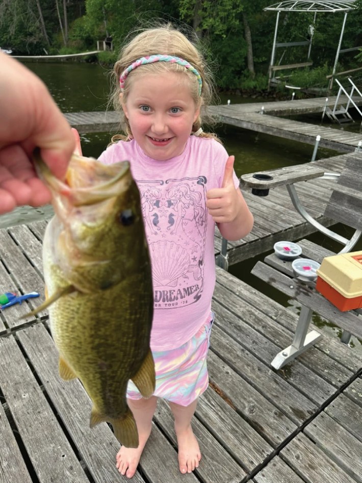 On the 4th of July weekend we went to Cross Lake. We fished off the dock and I caught more than 30 fish. I caught more fish than my dad did. I caught bluegills and bass. One of them was really big! Also I caught a Northern but it broke my line. I know it was a Northern because of the clean break. It used its sharp teeth!