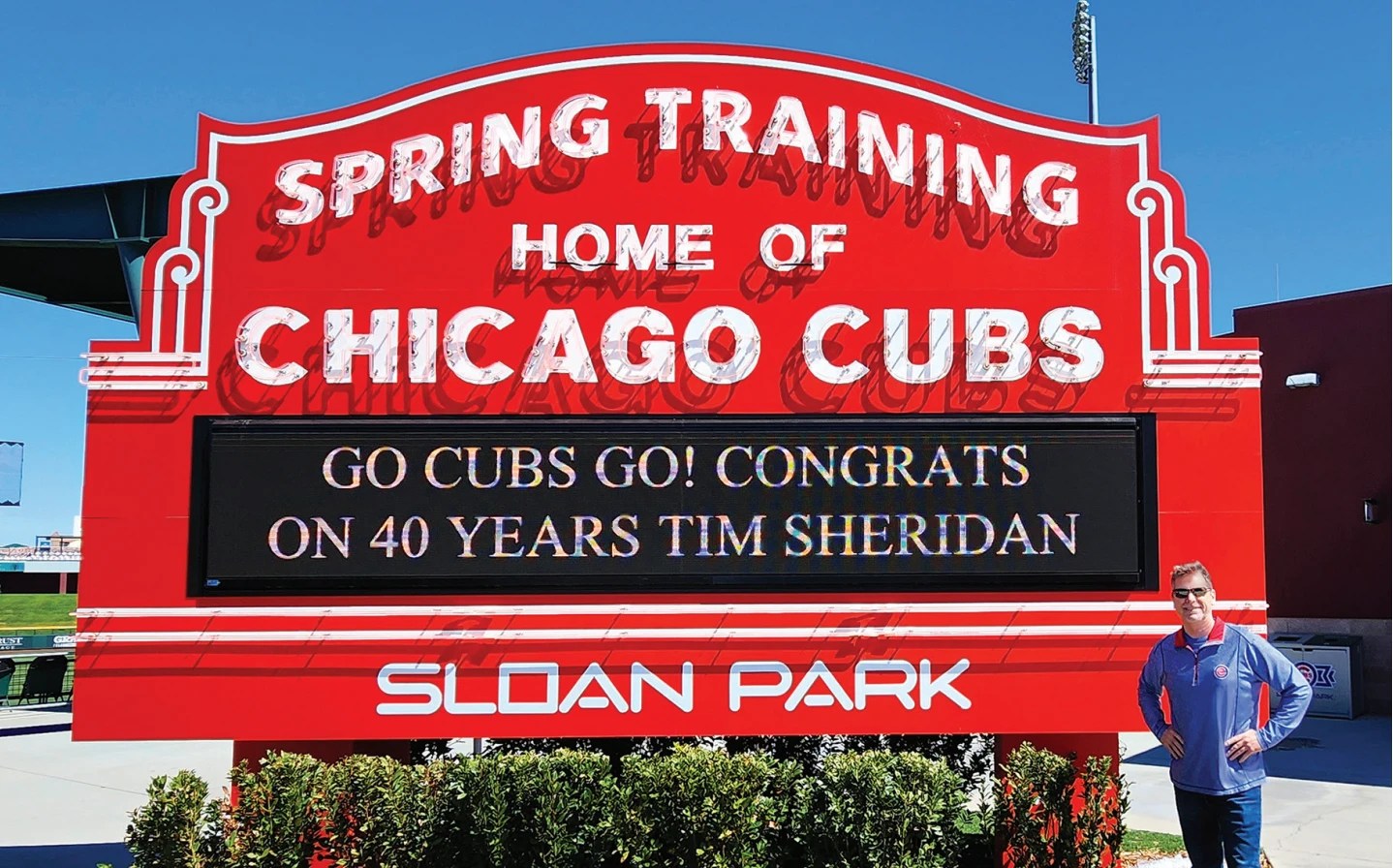 Sheridan landed the position as the Cubs’ spring training public address announcer in Mesa, Arizona while still in college in 1983. According to Tim, "It's hard to believe this is my fortieth consecutive season. It's like I went on spring break one semester and somehow got to keep going every year since."