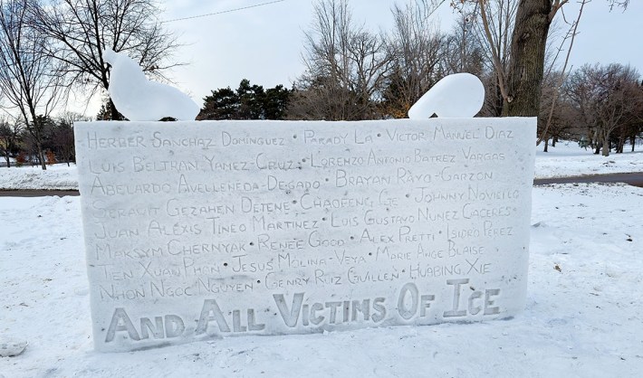 On Jan. 29, just days after Alex Pretti’s murder and 17 days after Renee Good’s voice was silenced, Hill & Lake Press editor Craig Wilson texted to ask whether we would host a re-created snow sculpture that had been censored elsewhere for being “too political,” referencing ICE OUT.