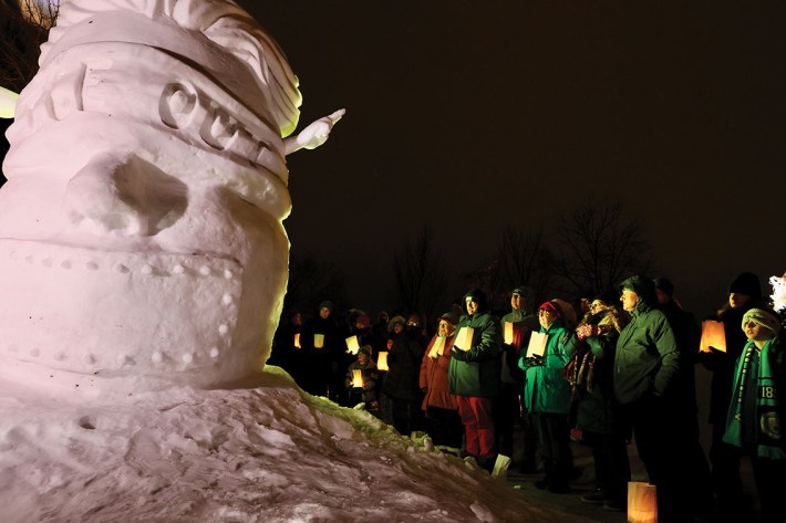 Artists would re-create the sculpture on private property, safe from official demolition, and we would hold a candlelight vigil with local poets. My husband, Mike Stewart, and I were all in. A flyer announced a 6 p.m. vigil the following Saturday, timed to coincide with the Luminary Loppet in hopes of a symbiotic relationship.