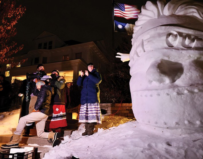 We are deeply grateful to everyone who came and to those who made the vigil possible: Heid Erdrich, Heather Friedli, Dusty Thune, Tristan Thiel, Thomas Reprographics, Mary Flood and most of all my husband, Mike, who watched over the sculptures and kept artists and neighbors warm and fed.