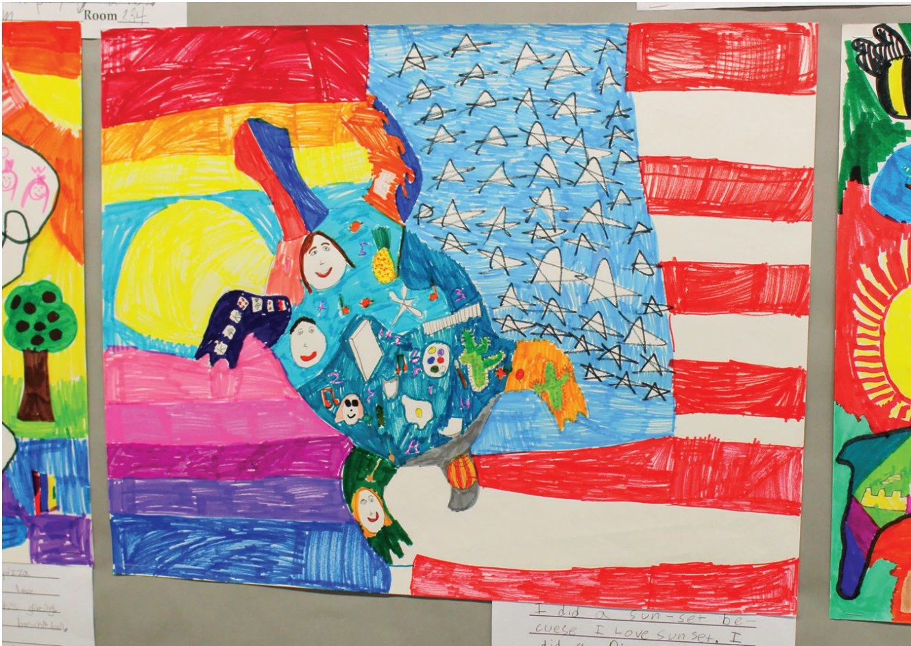 Each November, it’s impressive to view Zimmerman-Swenson’s method of displaying children’s grade level artwork side by side because with an identical assignment, students exhibit a delightful variety of ideas and interpretations.