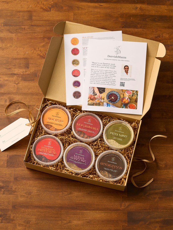 Lara recommends a curated holiday gift package from her friend and creative collaborator, local chef Mohamed “Mo” Kobt. His Mazza boxes — named for the Egyptian tradition of small, shareable dishes — reflect his journey from Cairo to France to New York City to Minneapolis. Mo grew up along the Nile in a food loving culture where mazza is enjoyed with eish, Egypt’s beloved bread whose name means “life.” As he likes to say, what is life without good food and good bread? His Mazza packages bring that spirit of generosity, flavor and connection into any home.