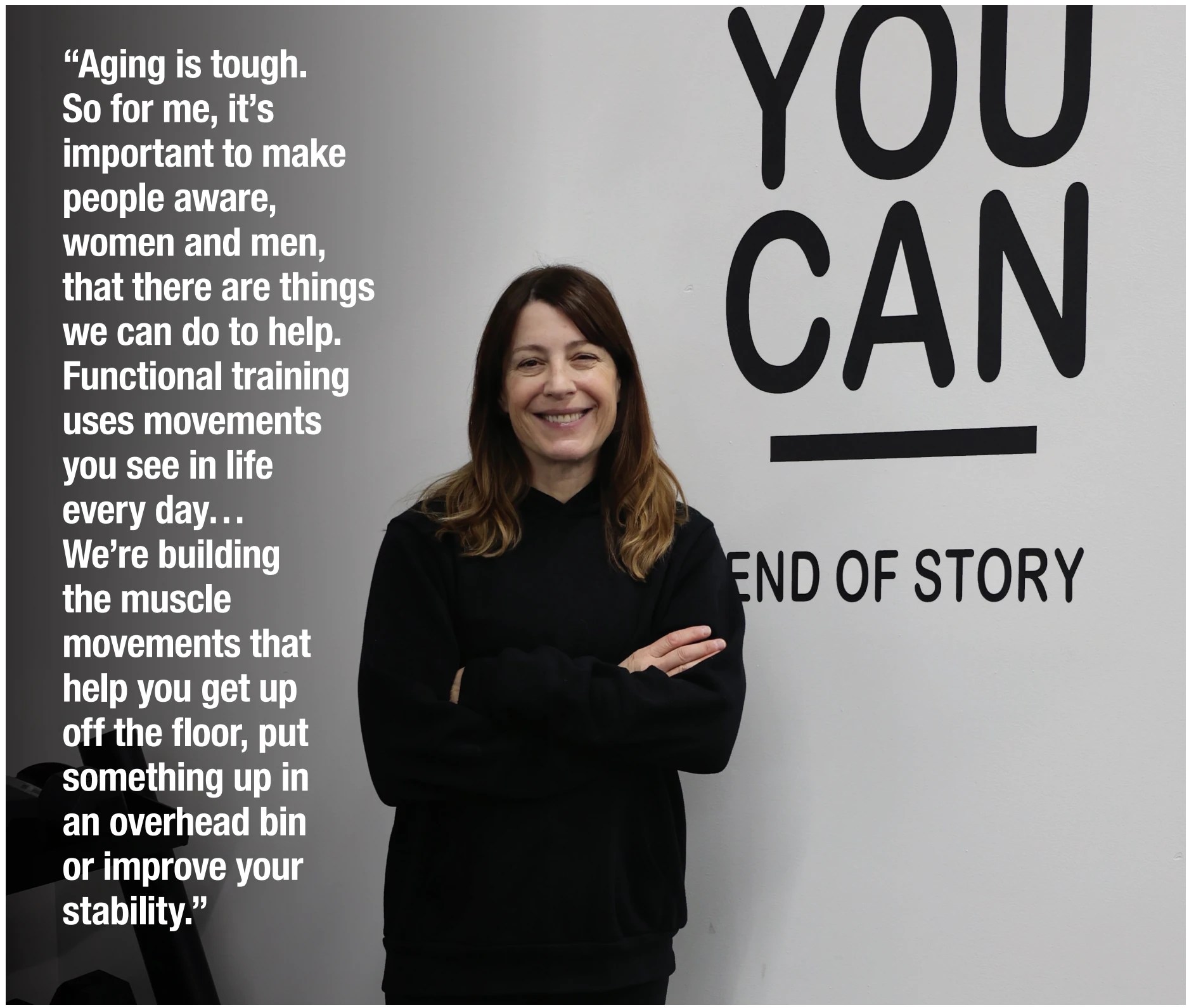 “Aging is tough. So, for me, it’s important to make people aware, women and men, that there are things we can do to help,” she said. “We're here to jump on boxes to keep our fast twitch muscles going, lifting weights to keep your bone density high, and the work we do to build your lean muscle mass.”