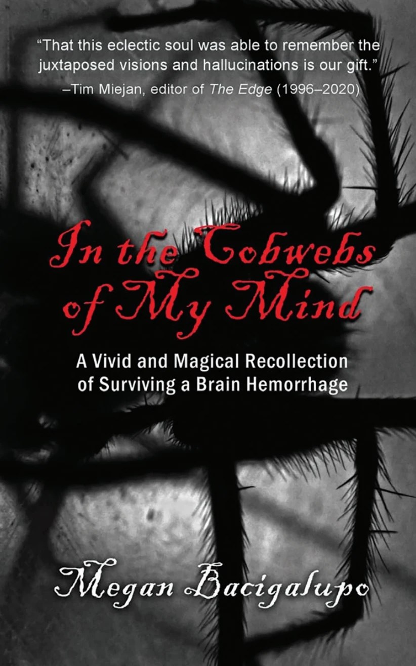 In Bacigalupo’s own words, “The book documents the strength and creativity of a healing brain and all that it witnessed in its struggle to survive. It was written in no specific order, in a discombobulated form. It is avant-garde. It is gestalt. It is rich, vivid and theatrical. This story ushers the reader into a world of possibilities as it creates a complex, poetic and imaginative experience. “Cobwebs” teeters between two worlds. The world of ghost-dancing hallucinations and the world of mundane visitations by doctors, nurses, family and friends. I use several artistic disciplines: it is imagined as a one woman show, a documentary film and more; it is visually stunning with images that capture the true essence of my experience.”