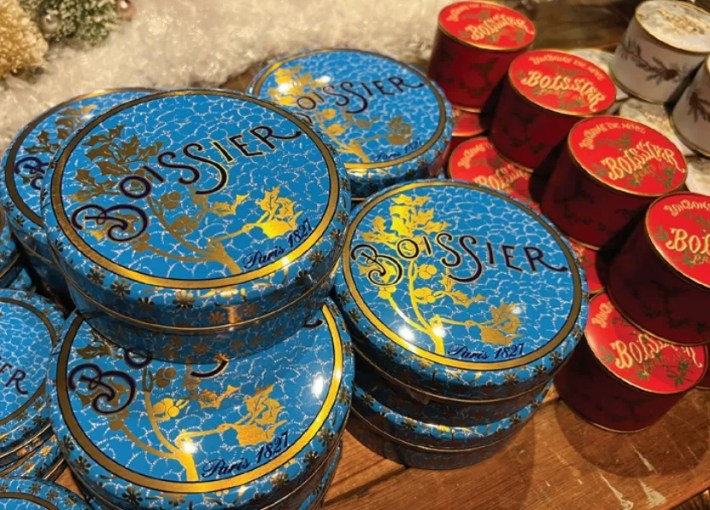 I would suggest packages of Boissier candy from Paris; a miniature version of Audubon’s Birds of America; intaglio sculptured soap of Diana, Cesar, or Hercules from Bridie Hall in London; incense from Astier de Villatte in Paris; decoupage mirrors by John Derian; notebooks by Epigram in Paris; ex-votos from France; hand-made Christmas ornaments; matchboxes; Bastide hand cream from Aix-en-Provence; scented soaps by Claus in Porto; and, for children, stuffed dolls by Parisian artist Nathalie Lété. I also have a collection of hand-made Victorian-style ornaments by Vintage by Crystal. Each ornament is one of a kind.
