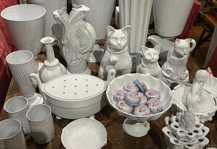 Our bestselling items are ceramics from Astier de Villatte, pillows from Anke Drexel, and framed butterflies. The holiday season also brings in customers who are collectors of natural history. We have a great collection of taxidermy birds from artists in the Netherlands.