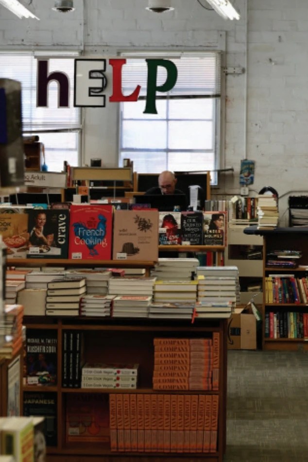 Originally the store only sold used books and remainders, primarily in the front showroom, but as the business grew it expanded into what once was the repair shop, and later the print shop. “I left things the way they were in this building. The decoration isn’t the most important thing, it’s what’s on the shelf. And I think most peo ple get it and like it that way. “