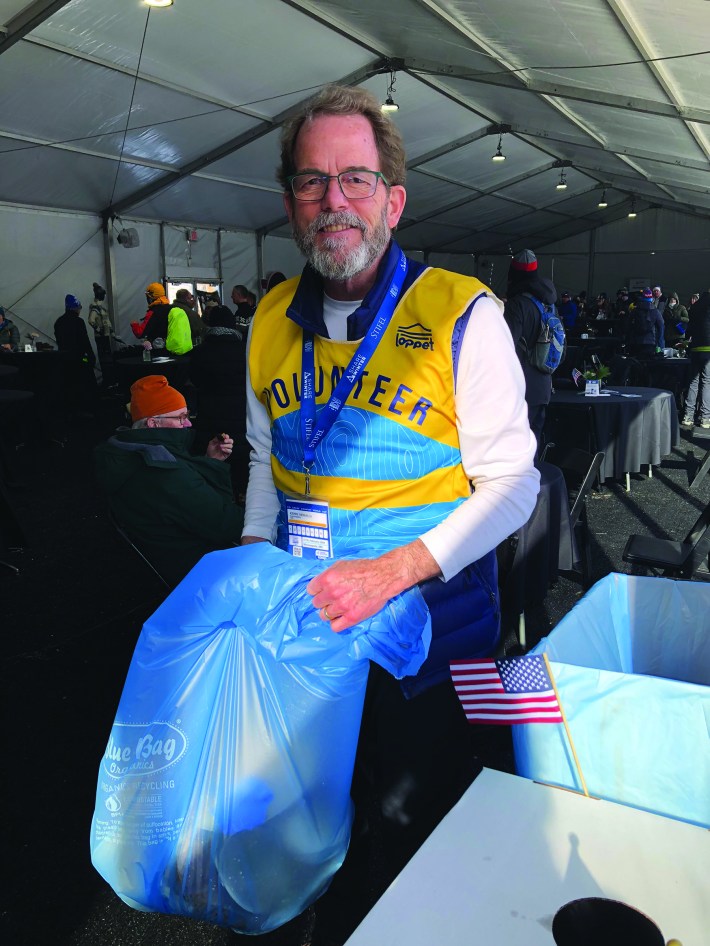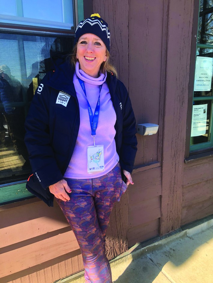 The volunteers, wearing yellow and blue bibs (whether by chance or choice, the colors of Ukraine) were doing everything from spreading grit on slippery pathways to guiding traffic to sorting garbage, with others providing food and drink in the VIP tent, and still others stationed throughout the park, coordinating media or keeping the course pristine. The European team members and their fans said they’d never seen anything like our volunteer corps anywhere on the tour.