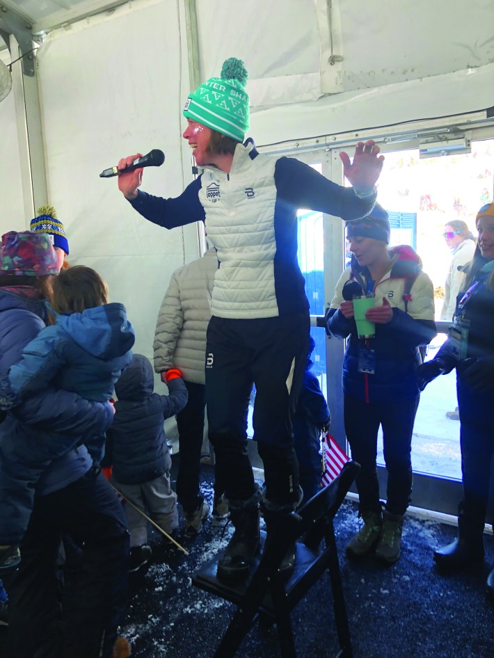 Once inside, spectators filled the bleachers near the start-and-finish line, while thousands more spread out over the course to shout encouragement to their favorite skiers. When the races got underway you could hear a roar coming from wherever Jessie Diggins was on the course, like a stadium “wave,” only coming from a grove of trees or the top of a hill.