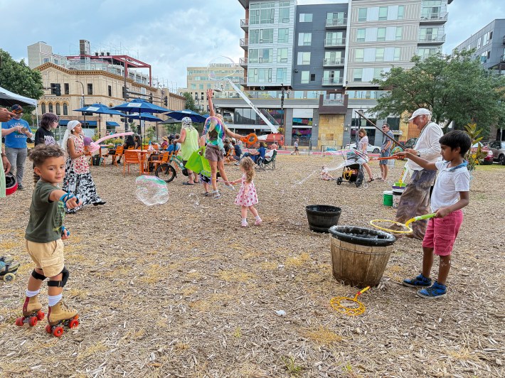 Kayakers glide across the Kenilworth Channel between Cedar Lake and Lake of the Isles on a summer afternoon.Giant bubble makers entertain kids at the Uptown Farmers Market, adding whimsy to a summer afternoonMusic fills the air as visitors relax and enjoy the Uptown Farmers Market's festive atmospher.Color flowers brighten a boulevard near Lake of the Isles for all to enjoy.Mushrooms spring up across the landscape in a quiet invasion after summer rains.