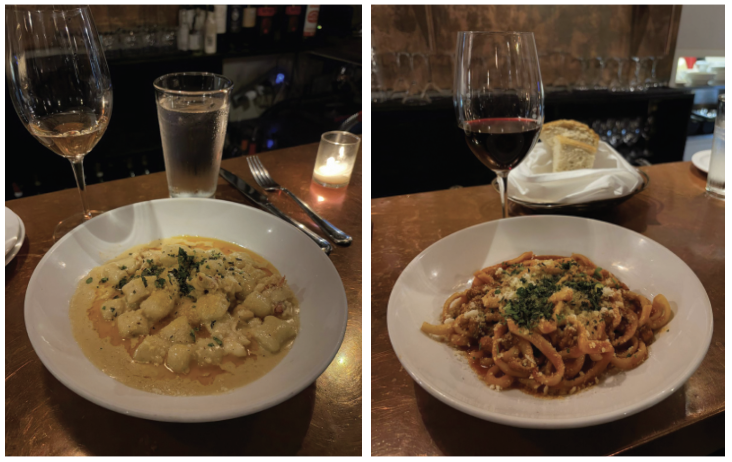 My wife went with the gnocchi. Gnocchi can be tricky to make — they often turn dense and heavy — but these were nice and fluffy, balancing well with the rich lobster cream sauce. We saw several pizzas heading to nearby tables, and they looked great, too. Pasta dishes range from about $25 to $35, and pizzas are in the low $20s. Service is friendly and attentive — and if you go a couple of times, they’ll probably remember your name.