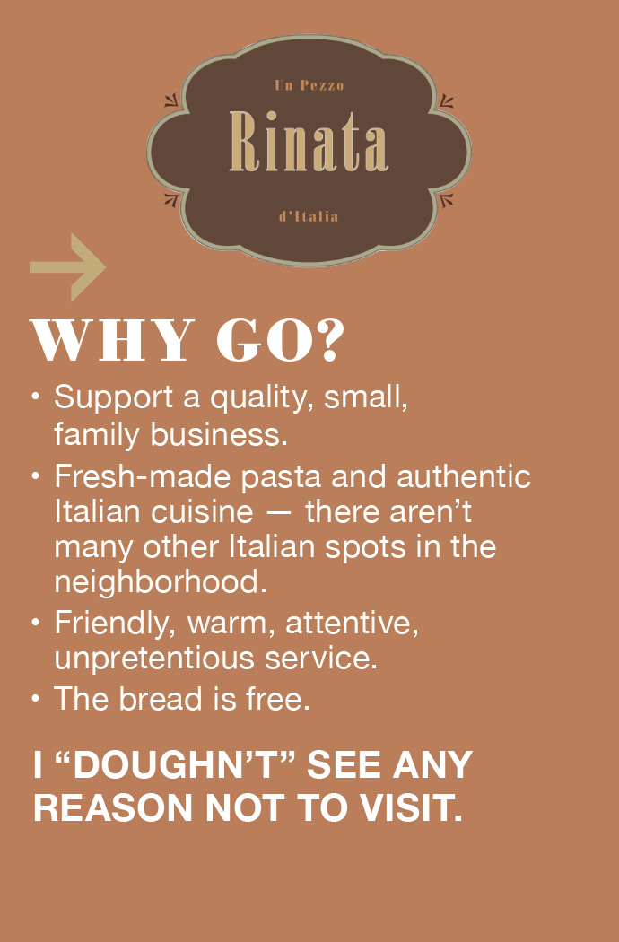 After nearly 20 years at the corner of Hennepin and 25th, Rinata should not be a new name to anyone in the neighborhood. A classic Italian trattoria — cozy, small, family-owned, traditional. Rinata translates to “reborn” in Italian, and the name couldn’t be more appropriate. We’re all hoping for a bit of a rebirth along the Uptown Hennepin corridor as construction finally wraps up. Rinata was hit particularly hard, sitting almost at the epicenter of both the north and south phases of the project.