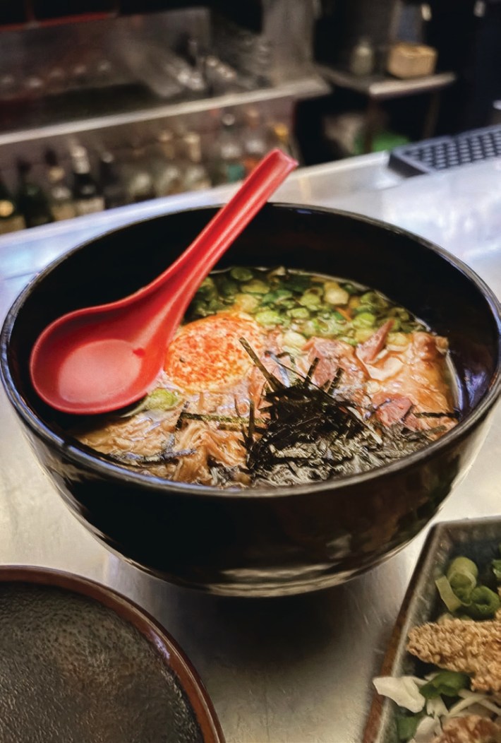 The food is Japanese with a focus on ramen. Classic pork and chicken varieties are available along with a rich mushroom broth option. De- spite being Japanese cuisine, there are plenty of vegan and gluten-free options for that one friend we all have.