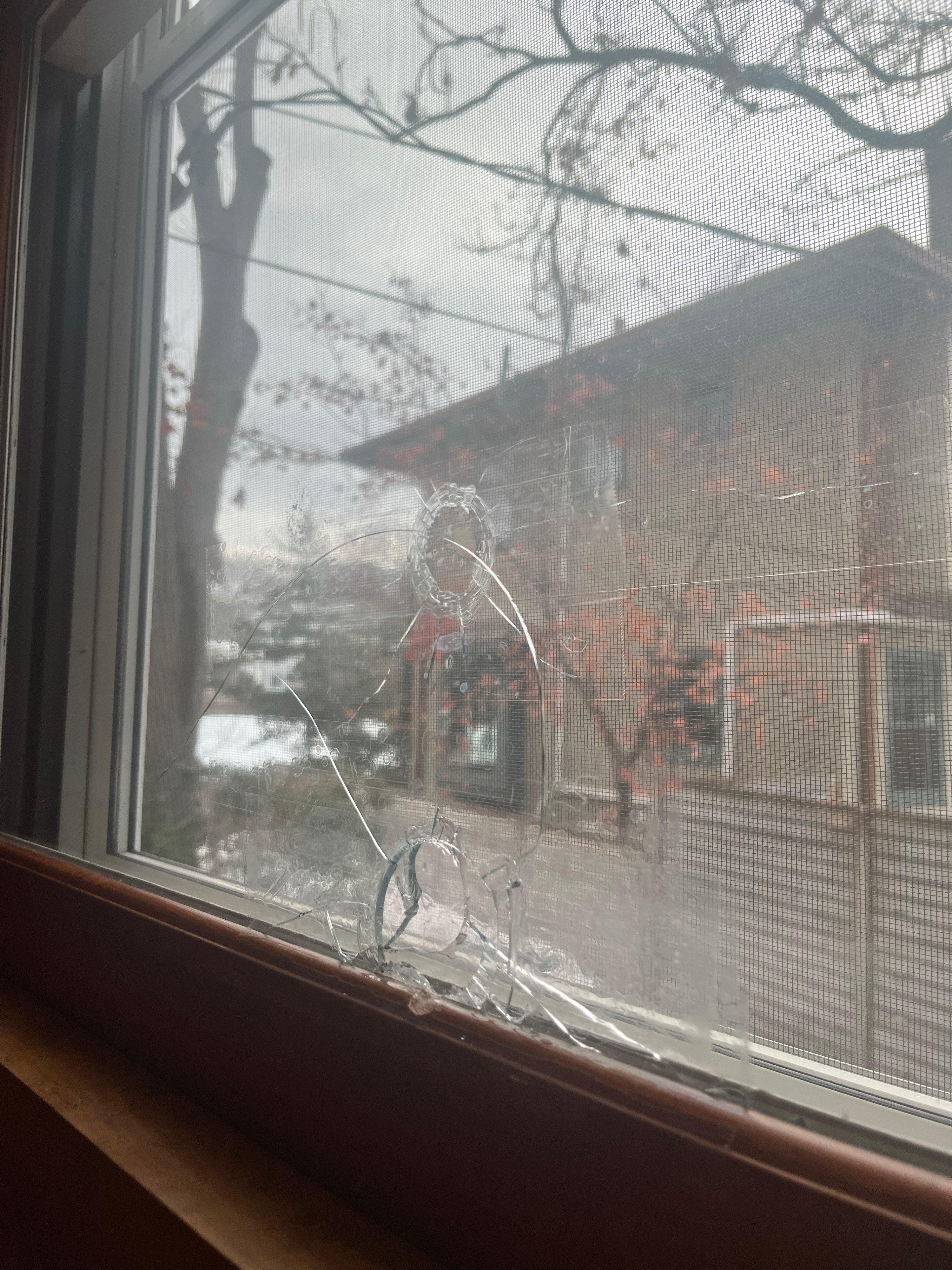 An East Isles couple is grappling with shock and frustration after a stray bullet pierced their kitchen window earlier this month, narrowly missing one of them and their dogs. The incident, which took place around 8:20 p.m. on the evening of Dec. 17, 2025.