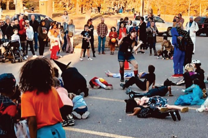 Some participants focused on the Spooky Spider Creation Station. Others transformed themselves into zombies and ghouls in order to dance in the global synchronized community dance to Michael Jackson’s “Thriller.” Other activities included caricature drawings, a coloring contest, live music by The Likely Suspects and a spooky performance by young actors from the Graceful Monsters Educational Theater Collective.