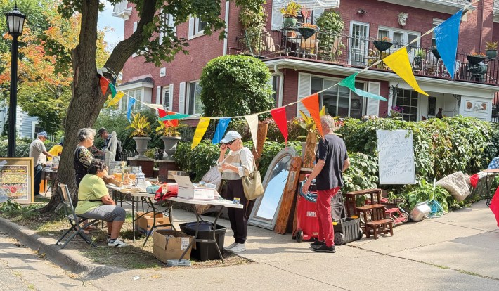 Walking home with a second full Ikea bag, I overheard visitors marveling at our neighborhood’s charm. That evening, Quinton hosted neighbors on his porch, while others laughed with friends beside piles of unsold items waiting for pickup.