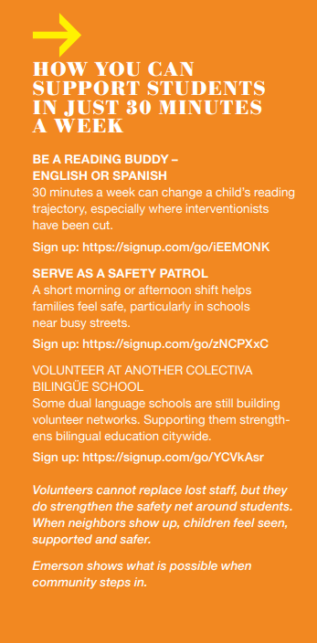 Many Emerson families also work multiple jobs or have schedules that make in-school volunteering difficult, especially now.