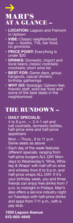 We lived in the heart of a big city. There were bars everywhere, but we always knew exactly which one he meant. I think Mari’s could be that bar for a lot of people in the neighborhood.