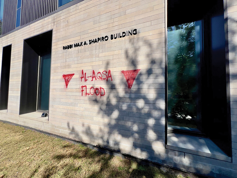 In a disturbing repeat of last year’s vandalism, Temple Israel was defaced again — this time with Hamas-linked graffiti on the second anniversary of the Oct. 7 attacks. Community leaders swiftly condemned the act as a hate crime, while police and the FBI launched an investigation into the antisemitic messages.